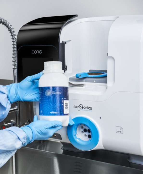 The CORIS system uses PULSS™ (Pulsed Suspended Solids) technology and CORIS QUANTUM® to deliver the physical friction required to remove soils and tough biofilm from all internal channels, including those that cannot be brushed.